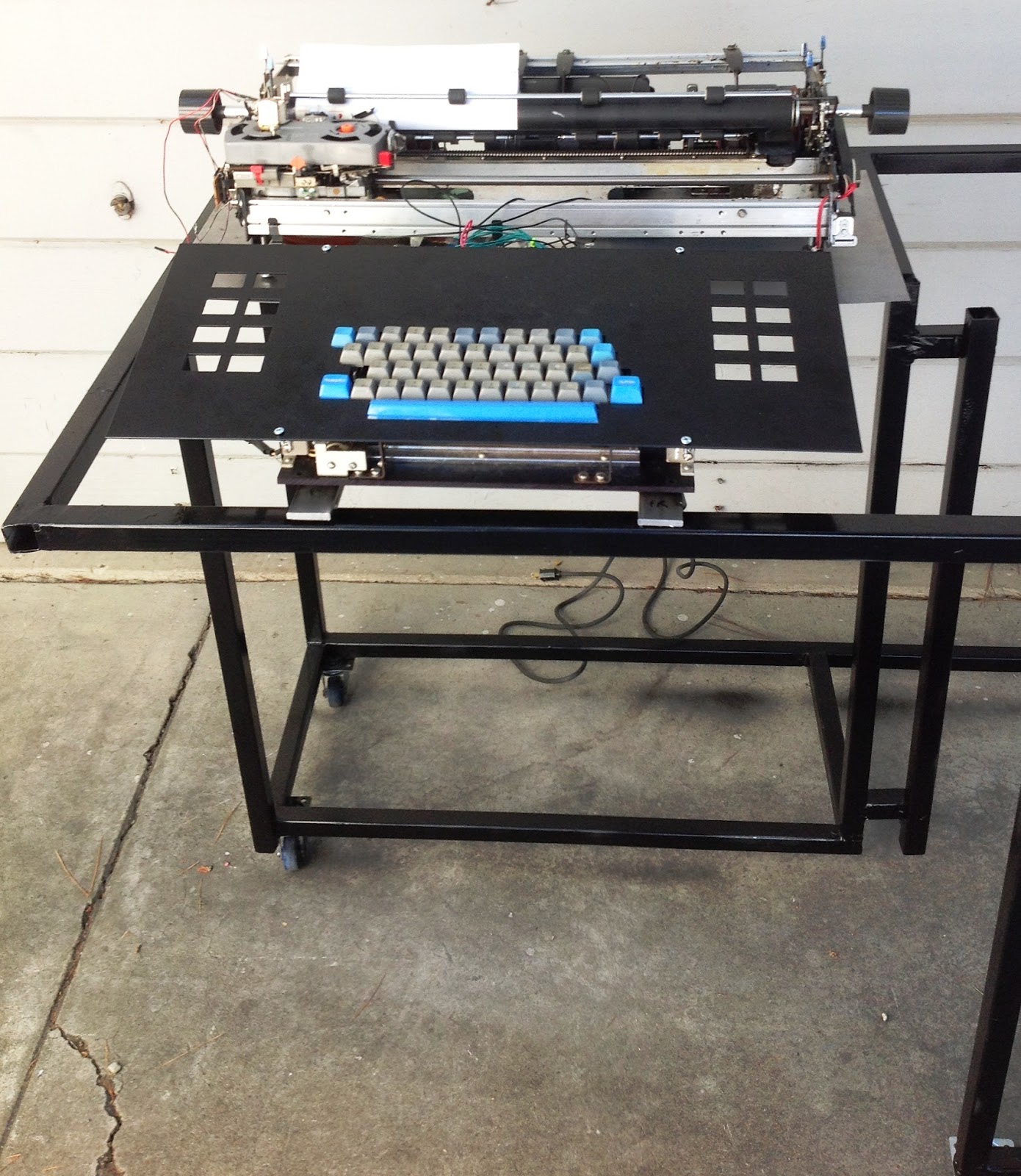 The typewriter needs to sit about 3" higher than the keyboard/black plate assembly and I have the challenge of producing an enclosure for the typewriter since my mechanism is several inches wider than the unit used in a real 1130. Also, the platen (rubber cylinder on which the paper rolls) is more than 2" further forward than on the IBM IO Selectric used on the 1130, so the knobs will be more forward on my machine. These differences will distort the alignment of the various parts - the real 1130 has things aligned like the black plate edge, the plate on the front of the typewriter, and the display plexiglass on the pedestal above the printer.